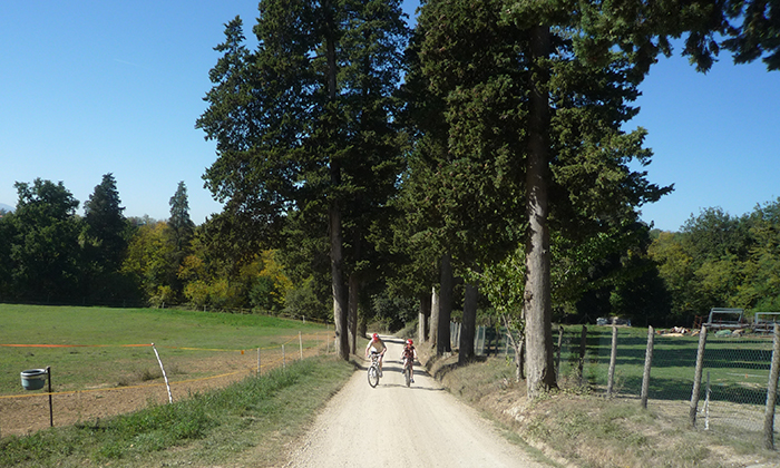 BICI: Vicchio-Ronta L’itinerario in bici parte da Vicchio, unendo idealmente la città di Firenze al piccolo paese di origine medievale, dove è nato Giotto. Le opere dell’artista vissuto a Firenze, sono caratterizzate dai paesaggi naturali, è ormai riconosciuto che egli rappresenta nelle sue opere la campagna toscana, e visitando il Mugello, la sua terra natale, conosceremo i luoghi e le immagini che l’artista si è portato dentro, sin da bambino, e che lo hanno inevitabilmente ispirato nella creazione dei suoi dipinti. Scopriremo le origini del paesaggio toscano, famoso in tutto il mondo. Il percorso si snoda su trade secondarie lontane dal traffico e attraversa un’area rurale, dove campi coltivati, vigne e alberi d’olivo, formano una scacchiera colorata, punteggiata da case coloniche, ville signorili, chiese romaniche. La bicicletta è il mezzo ideale per vivere un’esperienza autentica. Possiamo fermarci davanti alla facciata della Pieve Romanica di San Cassiano in Padule, visitare una fattoria che produce zafferano e miele, vedere alcune vigne. Allontanandosi dalla valle del fiume Sieve la strada inizia a salire, mostrandoci sempre più da vicino le montagne degli Appennini, il paesaggio diventa montano, e i dolci saliscendi della strada sterrata ci accompagnano attraverso boschi di querce e coltivazioni di castagno da frutto.
